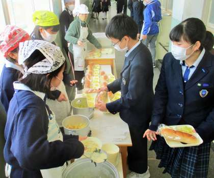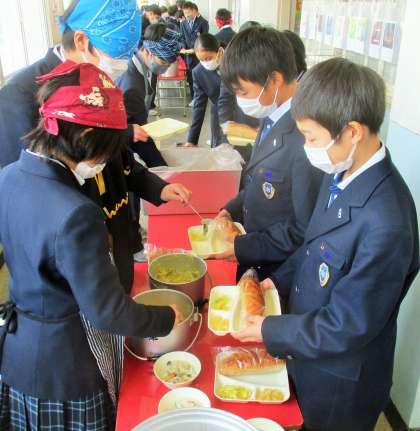 給食の配膳風景です。