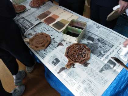 三種類のニスを、きれいに塗っています。