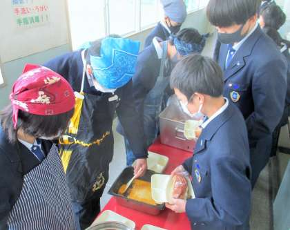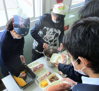 給食の配膳風景です。