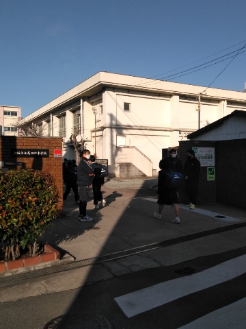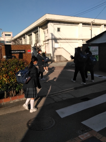 快晴の中、児童さん生徒たちが元気に登校してきました。