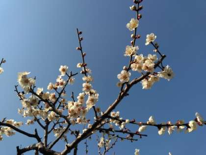 白梅は満開が近づいています。