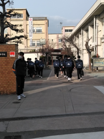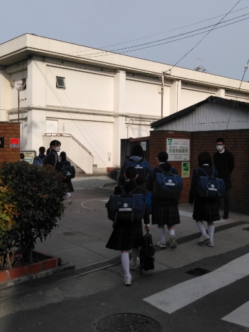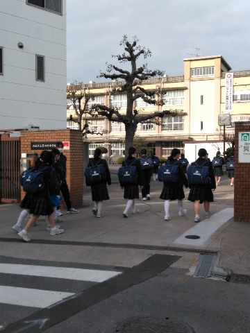 肌寒い朝ですが、児童さん、生徒たちが元気に登校してきました。