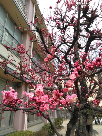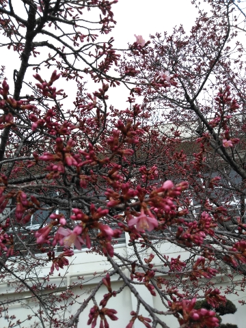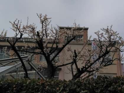 白梅は満開、紅梅は二分咲き、早咲きのサクラは、開花が始まりました。