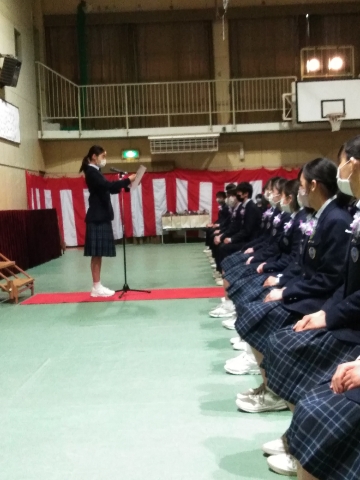 校長式辞、PTA会長祝辞、在校生の送辞と続きました。