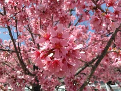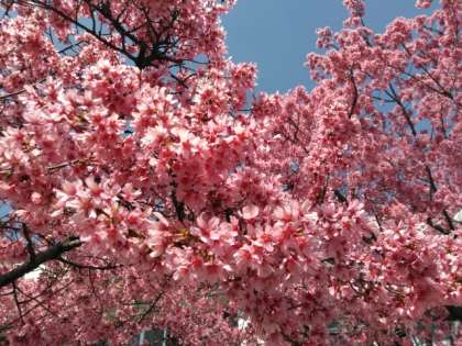 春の陽気に誘われて、早咲きのカンヒサクラが満開を迎えています。