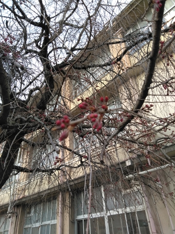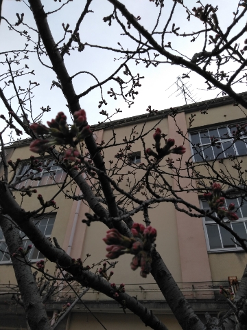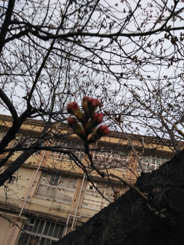 少し肌寒い朝ですが、校庭のソメイヨシノや垂れ桜の蕾が、赤く染まってきました。