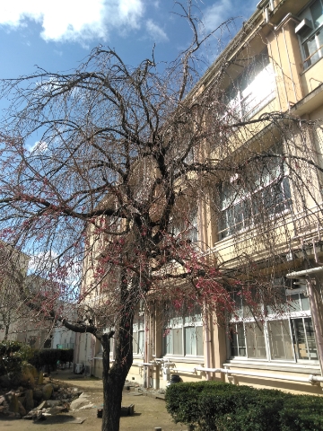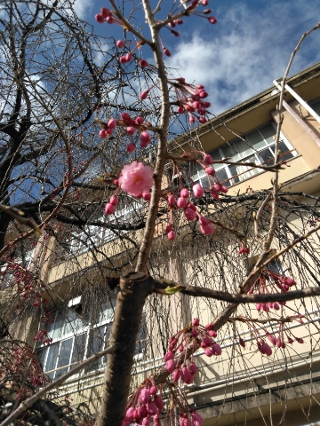 樹齢半世紀を超える垂れ桜も、開花が始まりました。