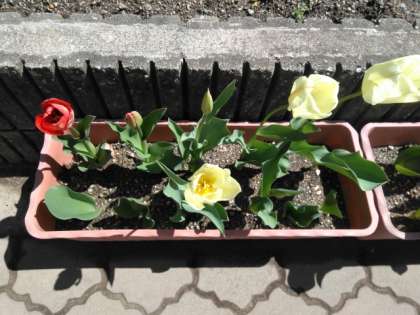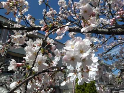 チューリップ、ソメイヨシノが鮮やかに咲いています。