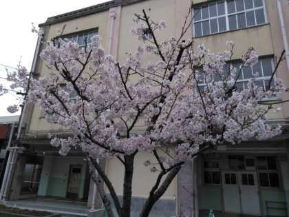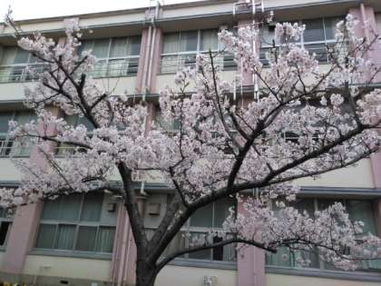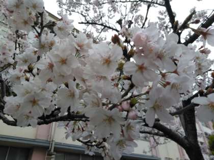 満開のソメイヨシノが中庭に春を告げています。