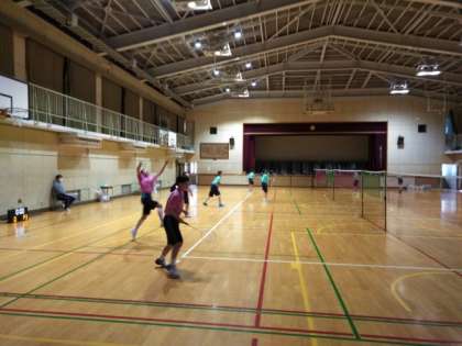 体育館では、バドミントン部が頑張っています。