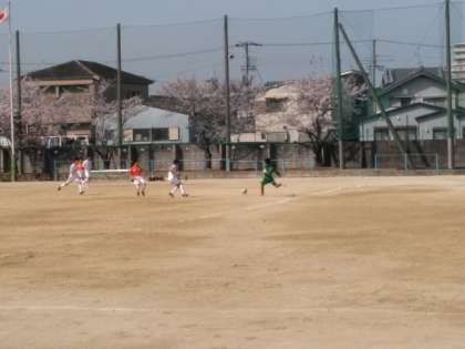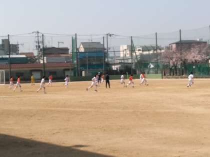 快晴のグラウンドでは、サッカー部が縦横無尽に走っています。