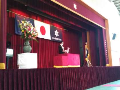 開式のことばに続き、国歌、大阪市歌、校歌斉唱。