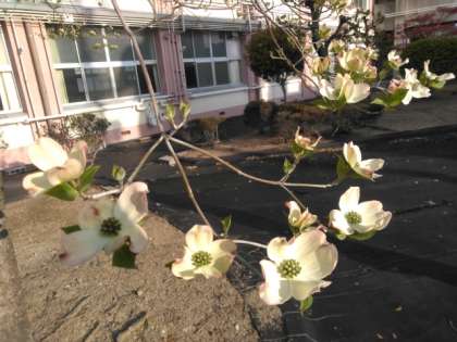 垂れ桜が美しさを維持し、ハナミズキが開花をすすめています。