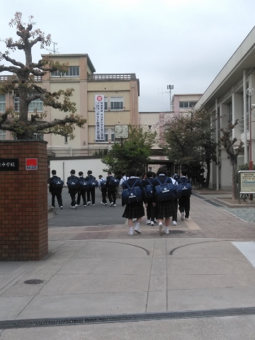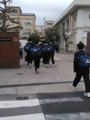 お天気はすぐれませんが、生徒たちは元気に登校しています。