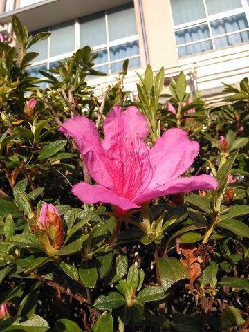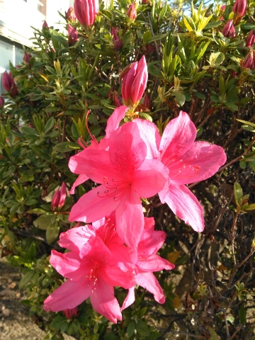 学校では、1年校舎裏のツツジが咲き始めました。