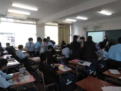英語では、ペアワーク。英会話が飛び交います!