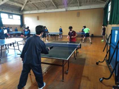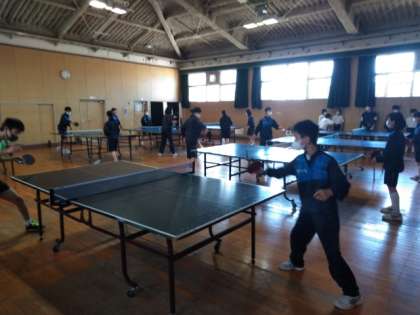 格技室では、卓球部が練習しています。