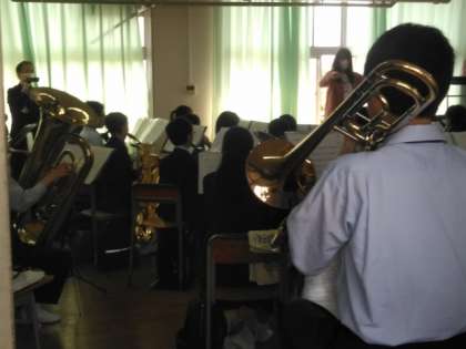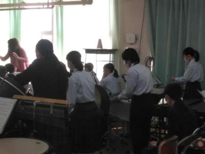 音楽室では、吹奏楽部の合奏が行われています。