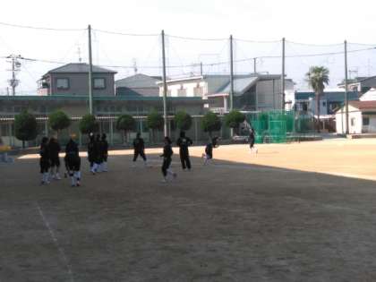 グラウンドでは、ソフトボール部がアップをはじめました。