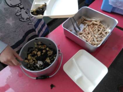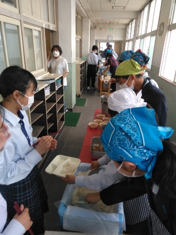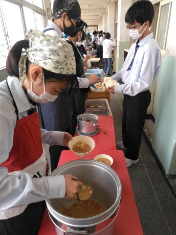 本日のメニューは、きびなごの天ぷら、野菜たっぷりの豚汁、若竹煮です。