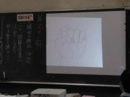 自分の手のデッサンです。