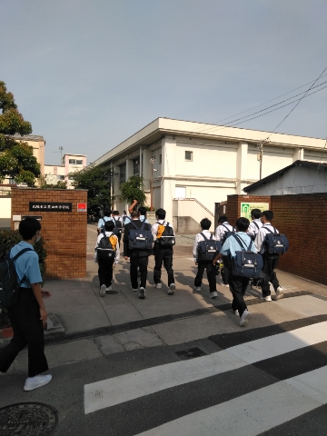 お天気の中、生徒たちが元気に登校して来ました。