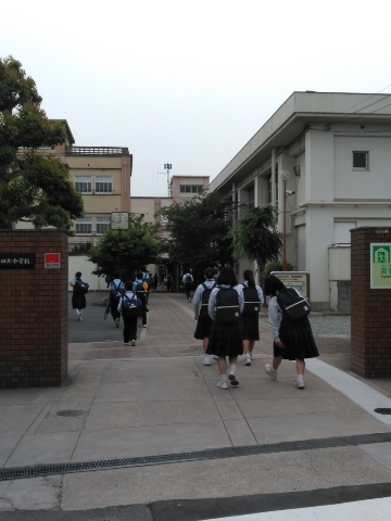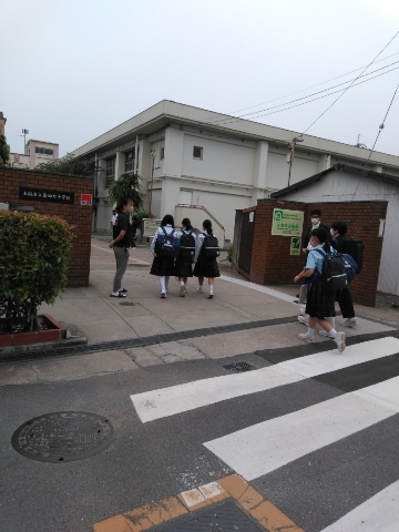 薄曇りの中、生徒たちが元気に登校して来ました。