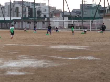 本日、グラウンドでは、運動部員の協力で、ニガリを巻きました。