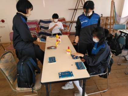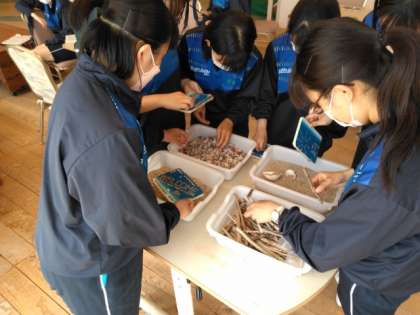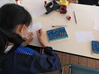 屋内では、貝殻を使った表札づくりです