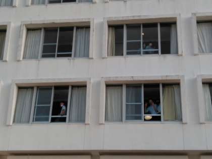 部屋の片付けをし、制服に着替え、朝食へ向かいます。