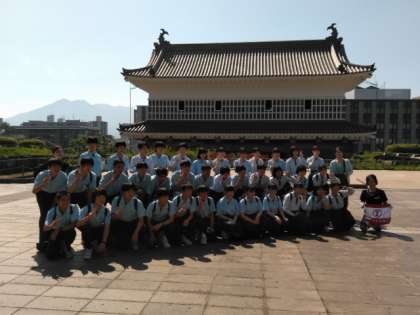 御楼門と桜島をバック