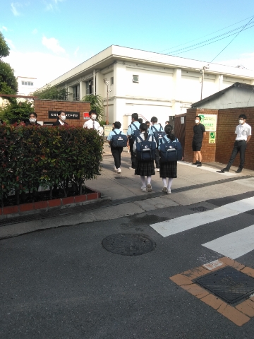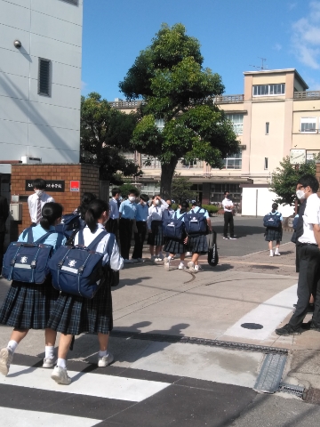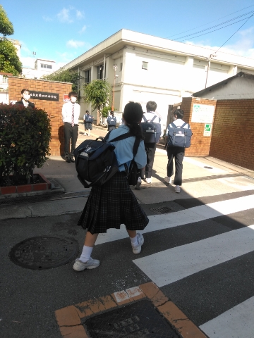 快晴の中、生徒たちが元気よく登校してきました。