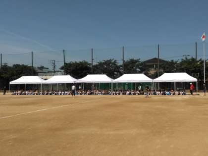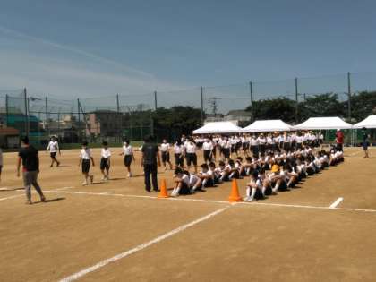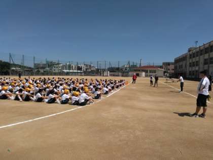 2時間目に、グラウンドで開会式の入場、開会式の練習を行っています。