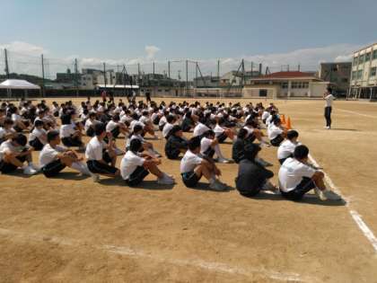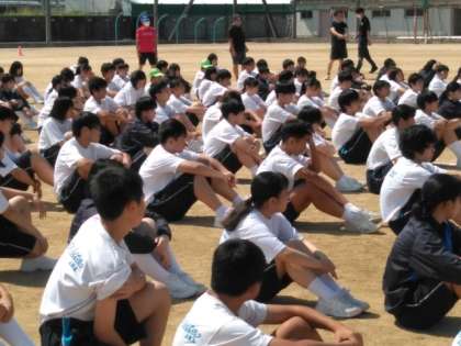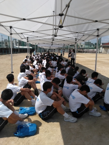 水分補給をし、熱中症にならぬよう、気をつけながらの練習です。