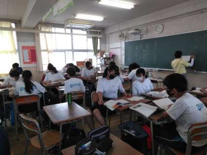 生徒たちは体操服ですが、教室内は温度が上がってきました。
