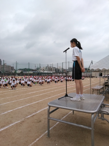 開会宣言、国旗掲揚、生徒会あいさつと続きました。