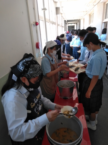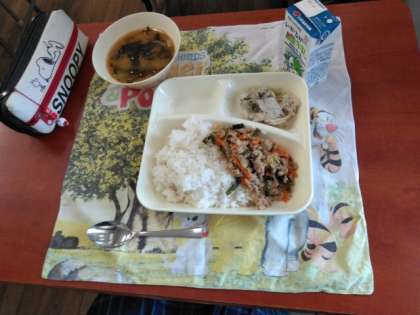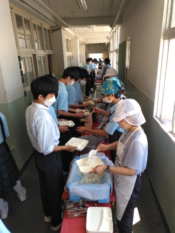 猛暑の給食ですが、お腹いっぱい食べてください!