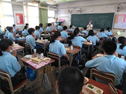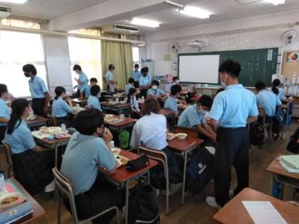 本日のメニューは、鶏肉の唐揚げ、中華味噌スープ、キュウリとコーンの甘酢和えでした。