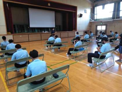 体育館では、テーピング講座。