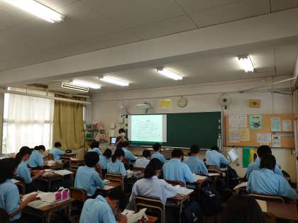 1年家庭科の授業の様子です。ミシンのことについて学習しています。