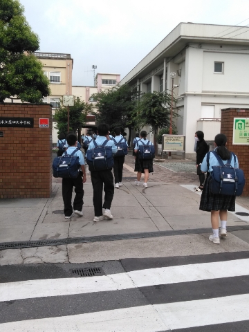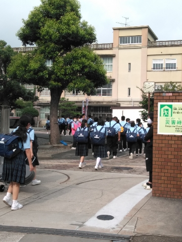 蒸し暑さの中、生徒たちが元気に登校してきました。