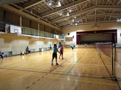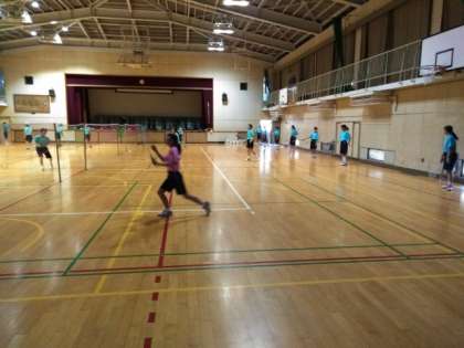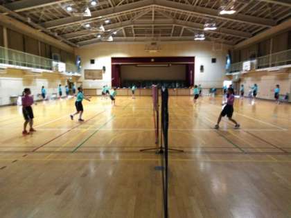 体育館では、バドミントン部が練習しています。