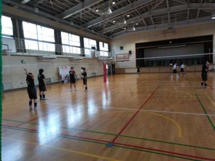 体育館では、女子バレーボール部が練習しています。