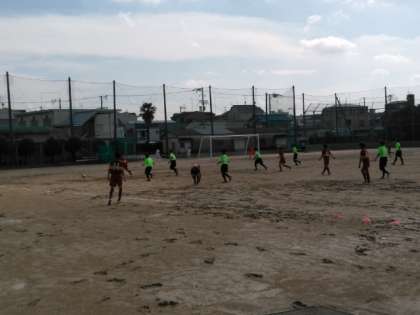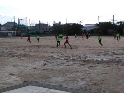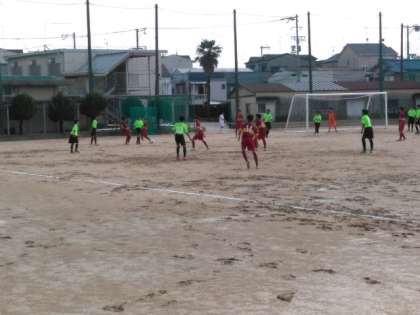 豪雨のあとのグラウンドで、サッカー部の公式戦が始まりました。