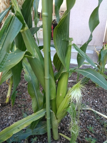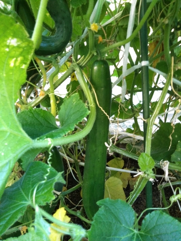 きゅうり、ナス、トウモロコシがすくすくと成長しています。