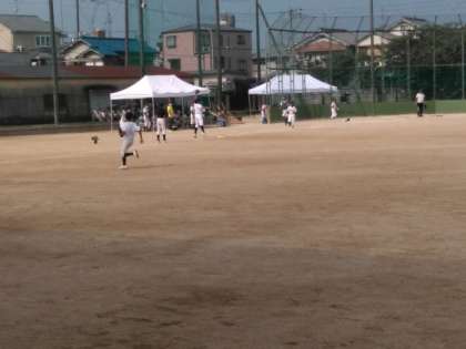 猛暑のグラウンドでは、本日も野球部が練習試合です。