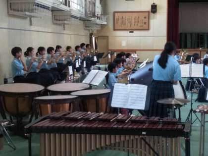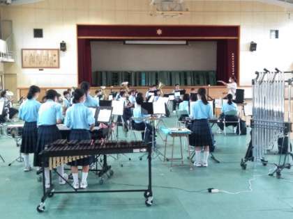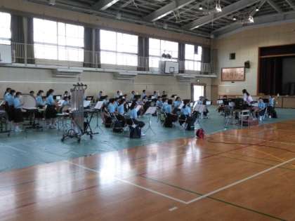 吹奏楽部が体育館で、コンクールのリハーサルを行っています。