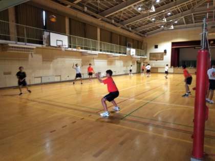 体育館では、男子バレーボール部が練習開始。