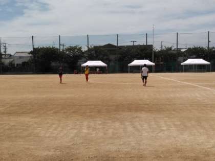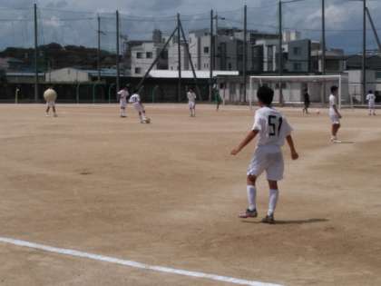 灼熱のグラウンドでは、サッカー部が大領中学校を招いての練習試合です。
