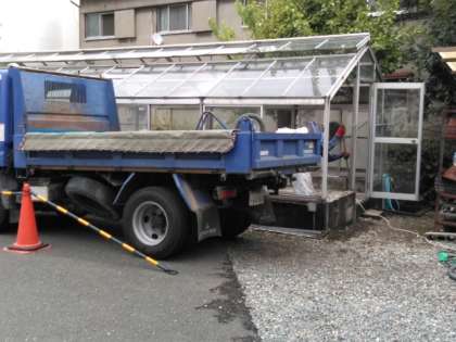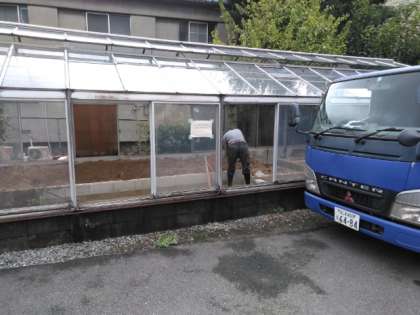 使われなくなって久しい正門横の温室。老朽化が激しくなっています。